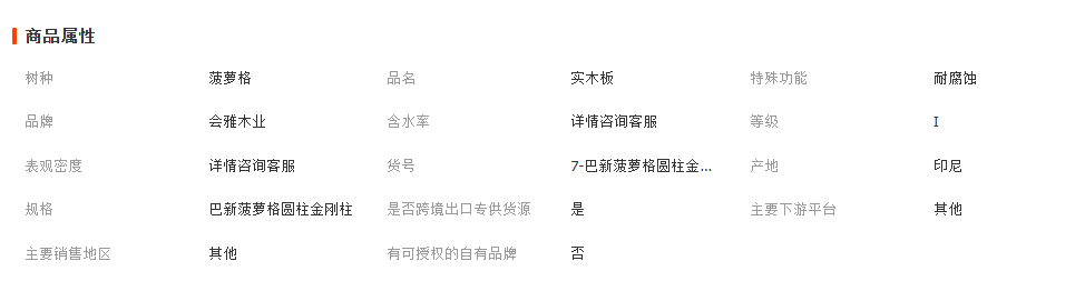 菠萝格; 柚木; 第伦桃; 黄芸香; 山樟木; 大匹马; 柳桉木; 榄仁木; 阿摩栋; 冰糖果; 重蚁木; 巴劳木; 巴蒂木; 红铁木; 唐木; 银口; 奥坎; 油花梨; bk; 杂木;