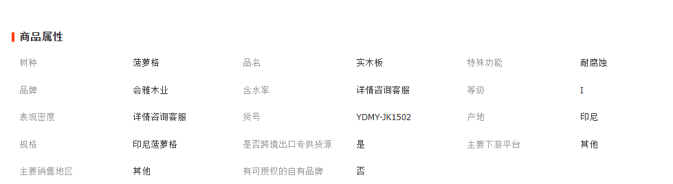 菠萝格; 柚木; 第伦桃; 黄芸香; 山樟木; 大匹马; 柳桉木; 榄仁木; 阿摩栋; 冰糖果; 重蚁木; 巴劳木; 巴蒂木; 红铁木; 唐木; 银口; 奥坎; 油花梨; bk; 杂木;
