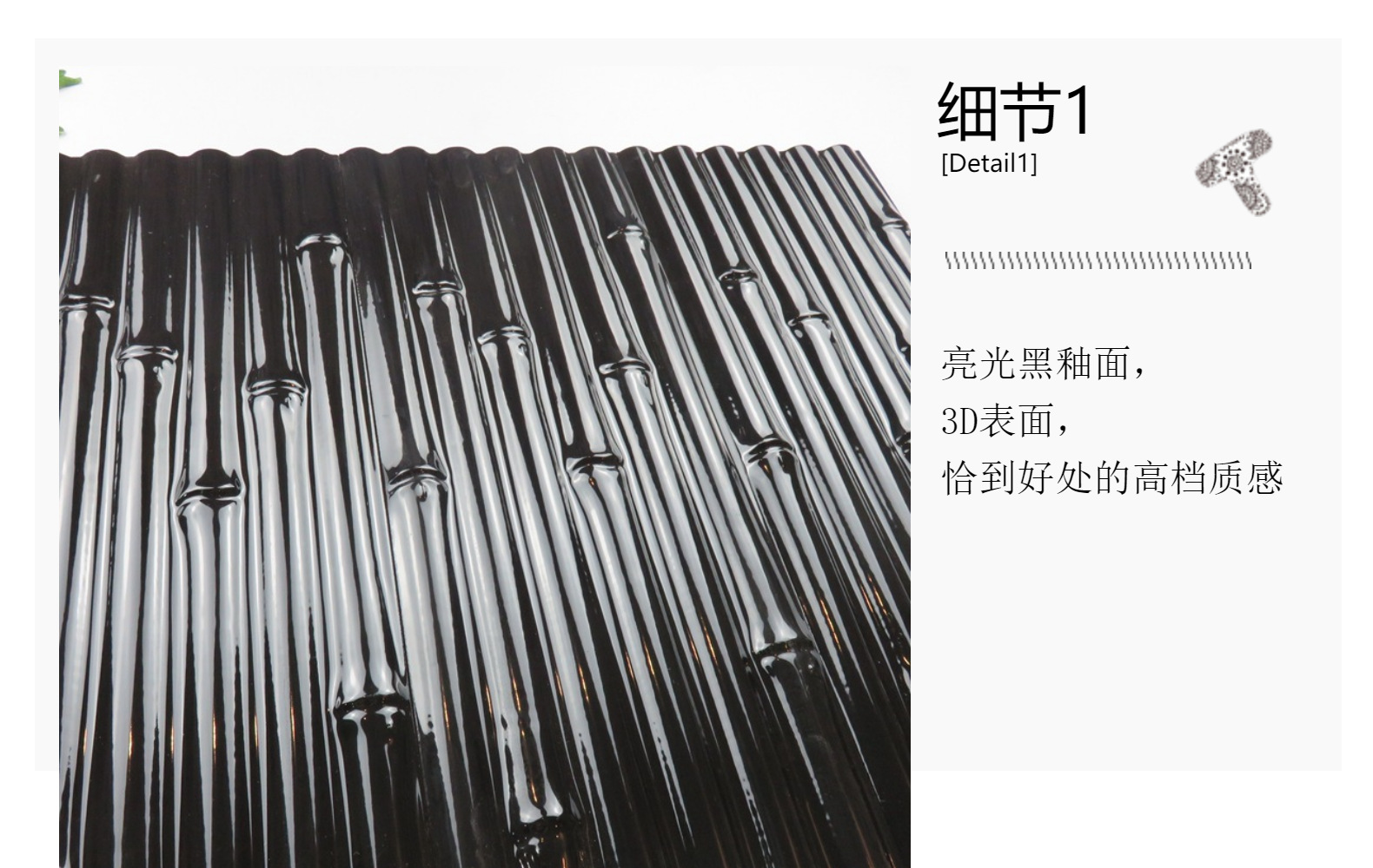 亮光黑色竹排手工砖 3D 陶瓷竹子砖 竹子瓷砖 商业空间用瓷砖