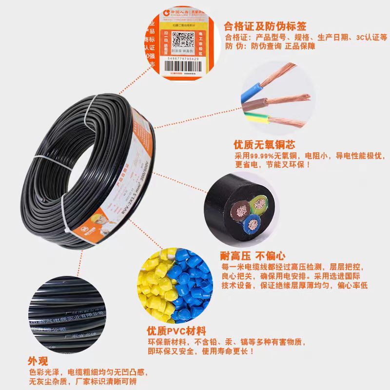 广州新兴电缆阻燃纯铜国标RVV2345芯0.75-6平方现货 阻燃电缆