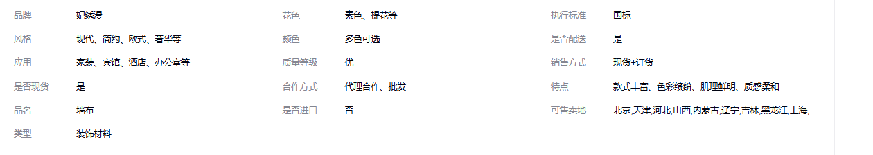 妃绣漫 装饰墙布 纱线纹理壁布 防油耐污 打理方便 本地工厂