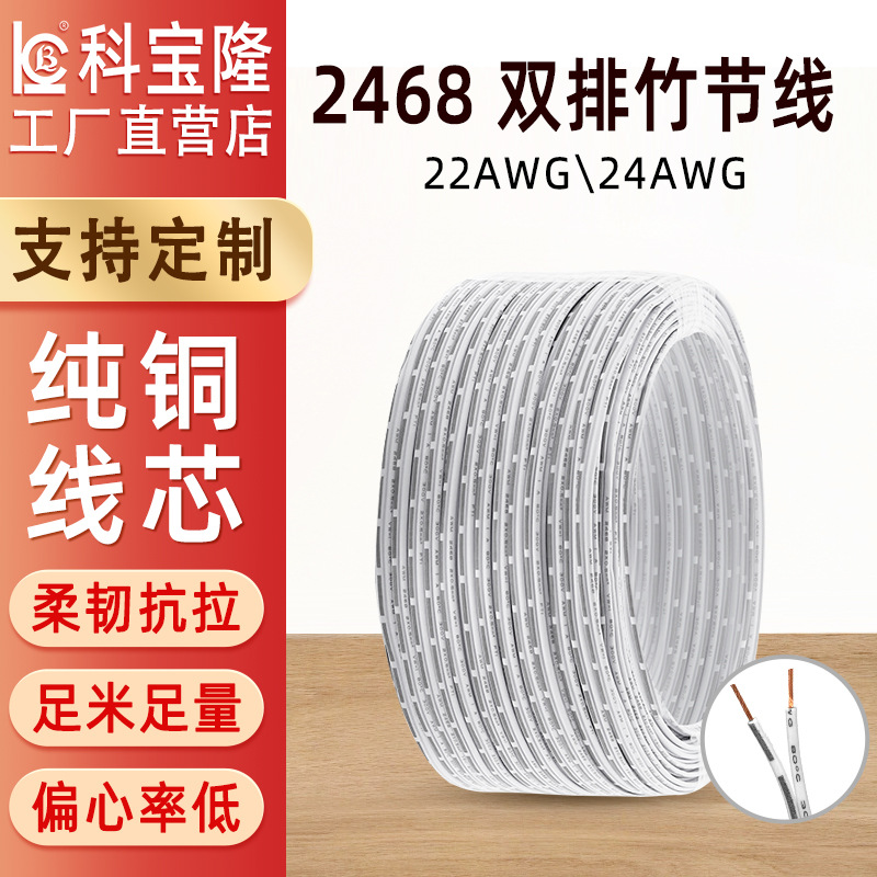 2468 22AWG24号双排竹节并线白注黑孖支两芯dc电源线led电子线厂