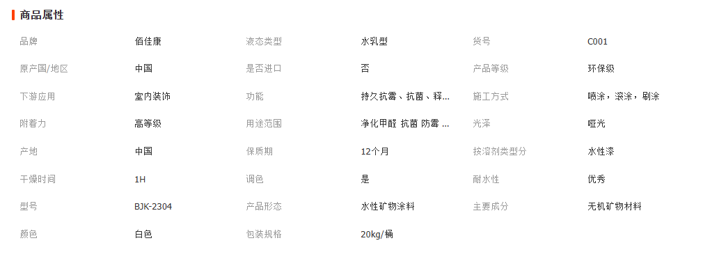 佰佳康无机矿物涂料20kg白色防潮净味环保内墙乳胶漆工程漆批发