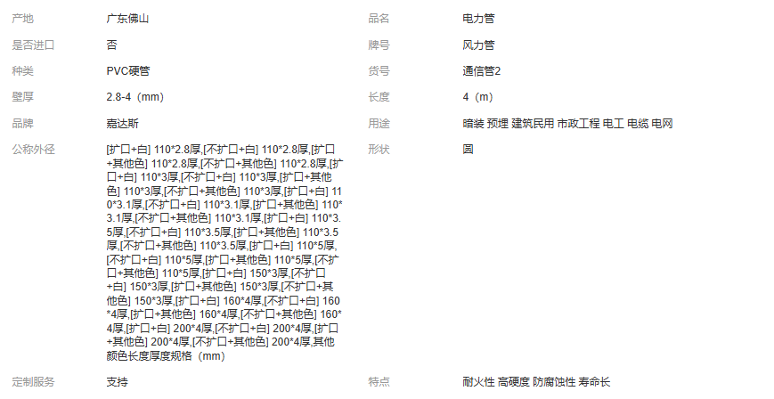埋地扩口PVC电力管厂家白色红色塑料通讯管电缆保护管穿线管