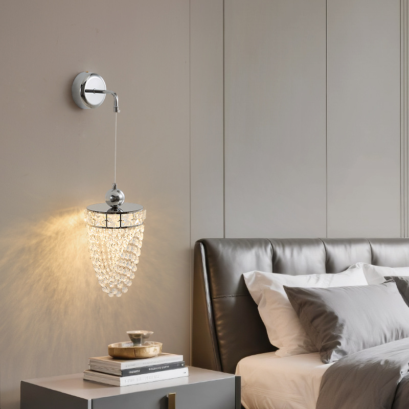 意式轻奢高级感房间卧室装饰灯走廊过道照明灯可升降床头水晶吊灯