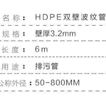 现货HDPE双壁波纹管PE聚乙烯双壁波纹管大口径排污管波纹管
