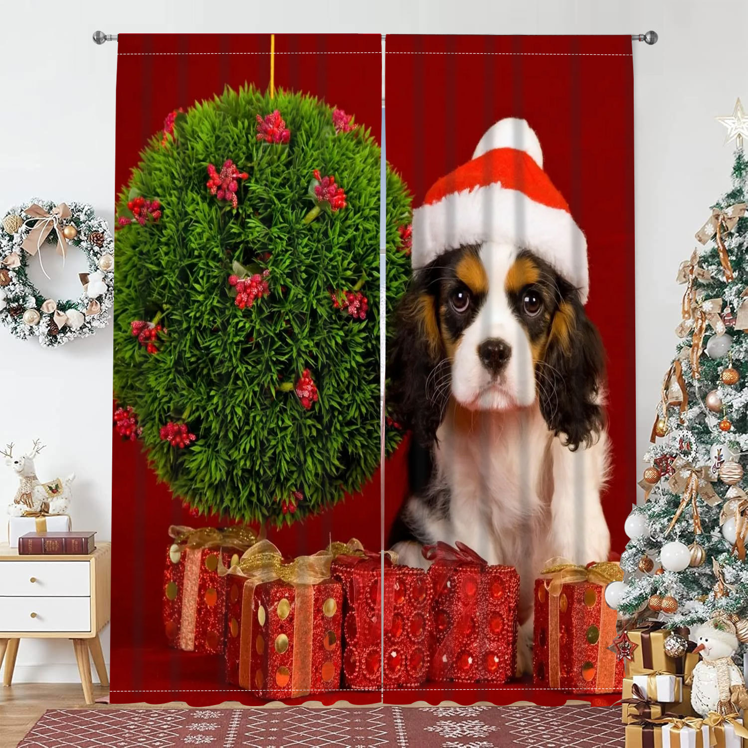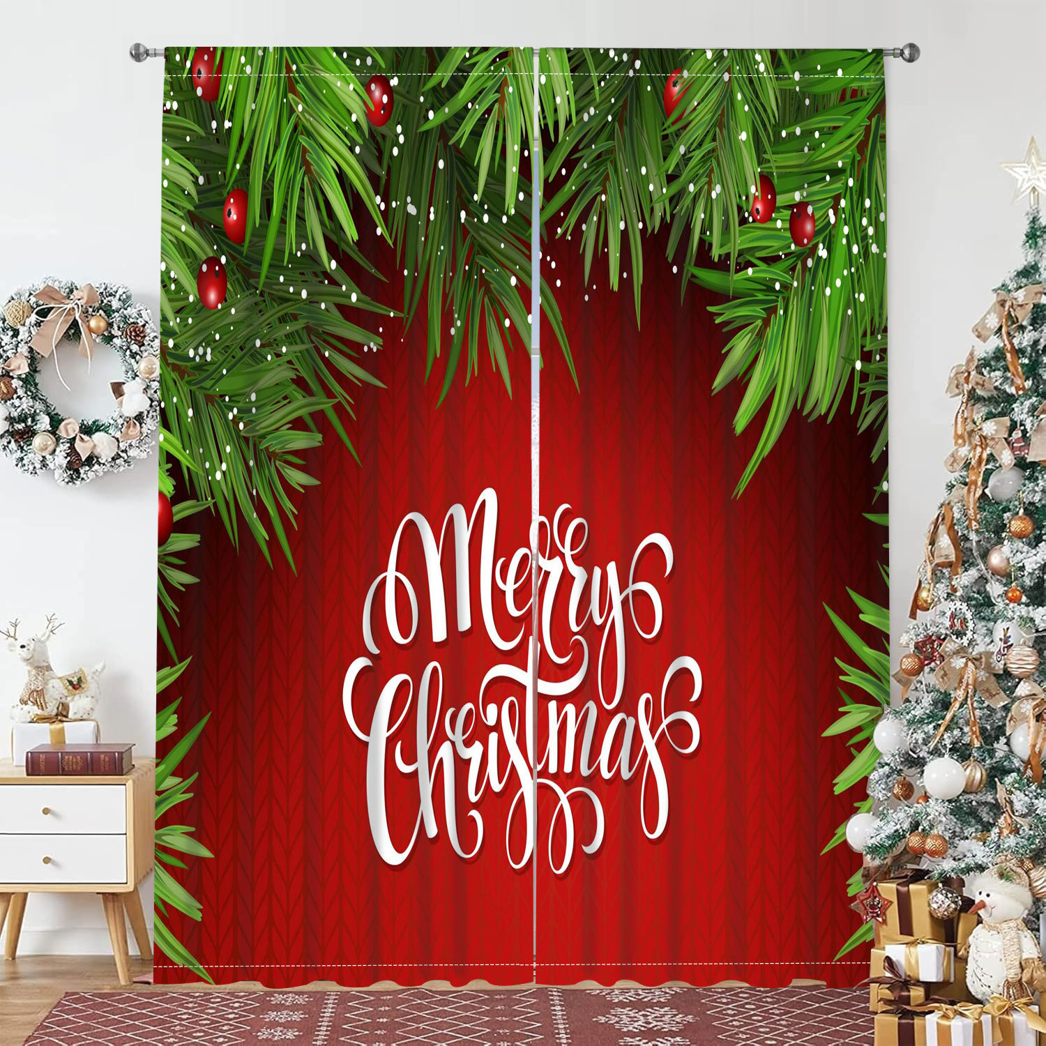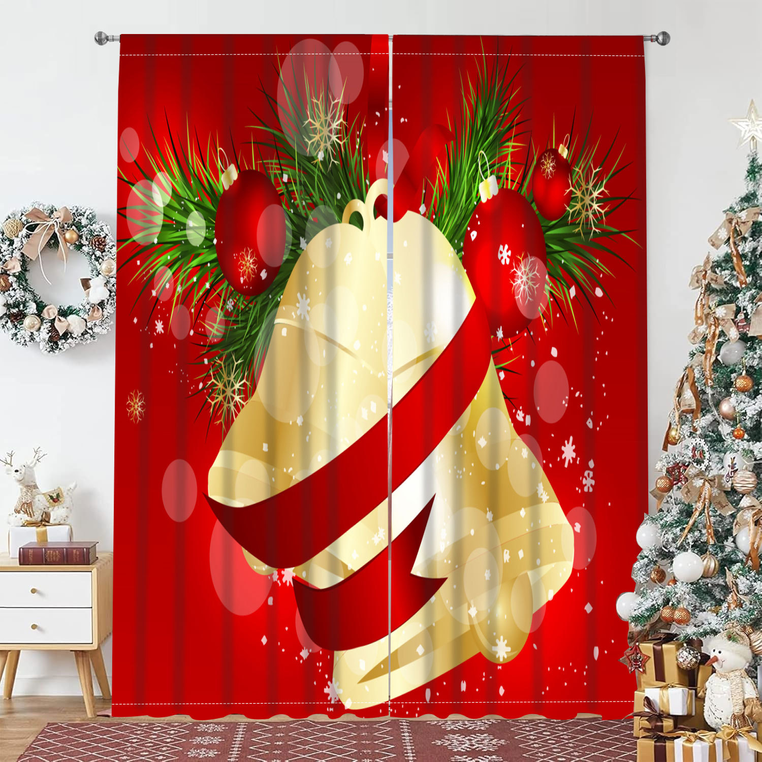 跨境代发圣诞氛围感半遮光窗帘卧室阳台家用磨毛布桃皮绒装饰窗帘