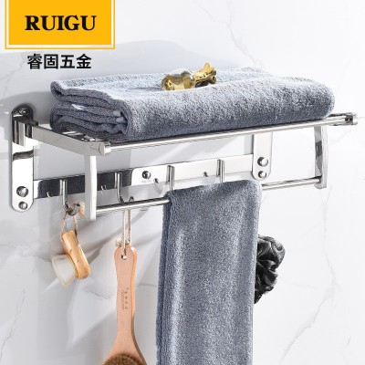 304不锈钢毛巾架 可折叠酒店置物架 卫生间打孔毛巾架浴巾架