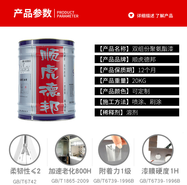 本网页所展示的有关【聚氨酯漆桶装双组份聚氨酯漆地面漆户外面漆涂漆防锈漆金属烤漆 20千克_油漆系统_浙江顺虎德邦涂料有限公司】的信息/图片/参数等由工装云的会员【浙江顺虎德邦涂料有限公司】提供,由工装云会员【浙江顺虎德邦涂料有限公司】自行对信息/图片/参数等的真实性、准确性和合法性负责,本平台(本网站)仅提供展示服务,请谨慎交易,因交易而产生的法律关系及法律纠纷由您自行协商解决,本平台(本网站)对此不承担任何责任。您在本网页可以浏览【聚氨酯漆桶装双组份聚氨酯漆地面漆户外面漆涂漆防锈漆金属烤漆 20千克_油漆系统_浙江顺虎德邦涂料有限公司】有关的信息/图片/价格等及提供【聚氨酯漆桶装双组份聚氨酯漆地面漆户外面漆涂漆防锈漆金属烤漆 20千克_油漆系统_浙江顺虎德邦涂料有限公司】的商家公司简介、联系方式等信息。