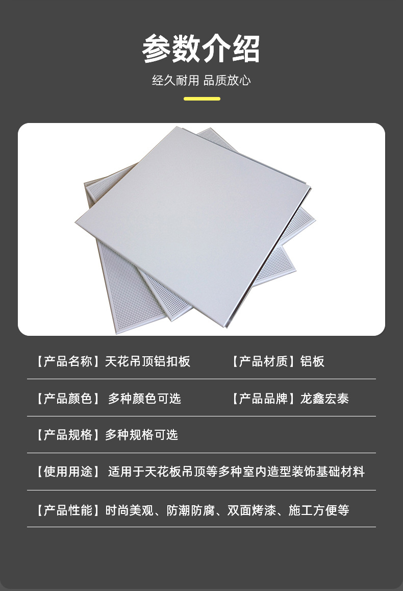 本网页所展示的有关【铝扣板吊顶全套批发建筑工程材料全孔铝扣板集成吊顶平面铝扣板 100平方米_五金工具_湖南龙鑫轻钢龙骨有限公司】的信息/图片/参数等由工装云的会员【湖南龙鑫轻钢龙骨有限公司】提供,由工装云会员【湖南龙鑫轻钢龙骨有限公司】自行对信息/图片/参数等的真实性、准确性和合法性负责,本平台(本网站)仅提供展示服务,请谨慎交易,因交易而产生的法律关系及法律纠纷由您自行协商解决,本平台(本网站)对此不承担任何责任。您在本网页可以浏览【铝扣板吊顶全套批发建筑工程材料全孔铝扣板集成吊顶平面铝扣板 100平方米_五金工具_湖南龙鑫轻钢龙骨有限公司】有关的信息/图片/价格等及提供【铝扣板吊顶全套批发建筑工程材料全孔铝扣板集成吊顶平面铝扣板 100平方米_五金工具_湖南龙鑫轻钢龙骨有限公司】的商家公司简介、联系方式等信息。