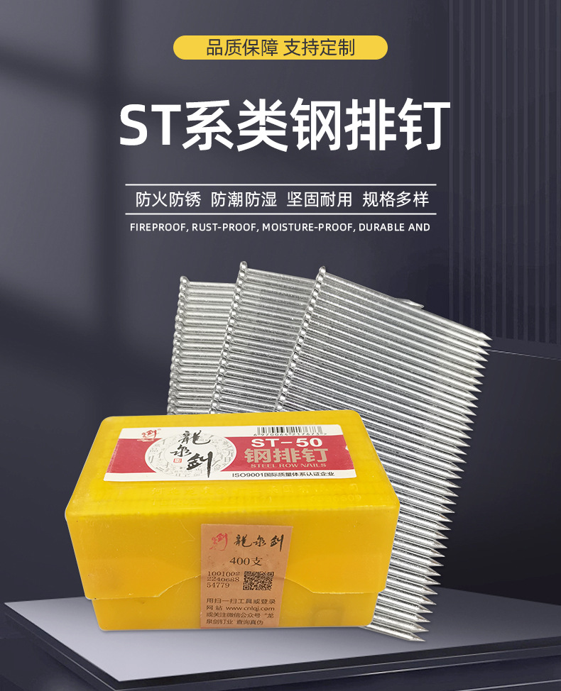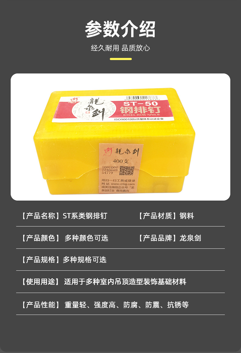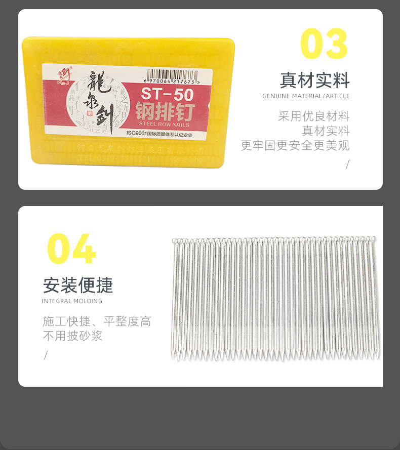 龙鑫st系列钢排钉现代简约气动木工水泥钢排钉批发 5盒