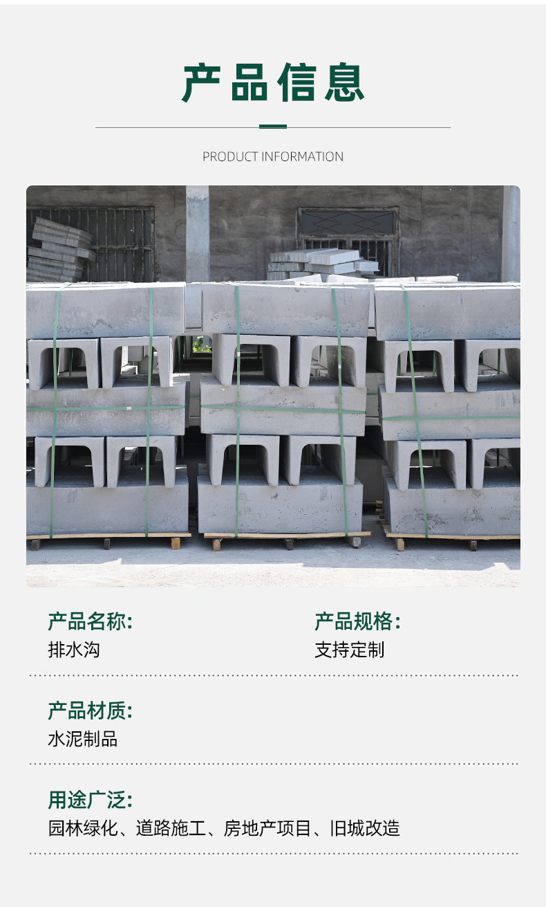 本网页所展示的有关【线型排水沟u型槽水泥排水槽园林绿化线性缝隙式车库成品排水沟 2平方米_瓦工系统_章丘市维新水泥制品销售部】的信息/图片/参数等由工装云的会员【章丘市维新水泥制品销售部】提供,由工装云会员【章丘市维新水泥制品销售部】自行对信息/图片/参数等的真实性、准确性和合法性负责,本平台(本网站)仅提供展示服务,请谨慎交易,因交易而产生的法律关系及法律纠纷由您自行协商解决,本平台(本网站)对此不承担任何责任。您在本网页可以浏览【线型排水沟u型槽水泥排水槽园林绿化线性缝隙式车库成品排水沟 2平方米_瓦工系统_章丘市维新水泥制品销售部】有关的信息/图片/价格等及提供【线型排水沟u型槽水泥排水槽园林绿化线性缝隙式车库成品排水沟 2平方米_瓦工系统_章丘市维新水泥制品销售部】的商家公司简介、联系方式等信息。