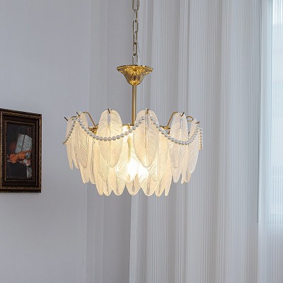轻奢法式羽毛玻璃吊灯 复古美式餐厅卧室客厅衣帽间设计师灯具 1支