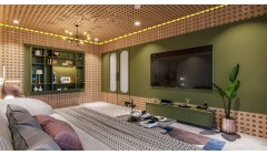 - 很有新意的吊顶!室内灯光明暗度可得到调节,凹凸有致的视觉感强