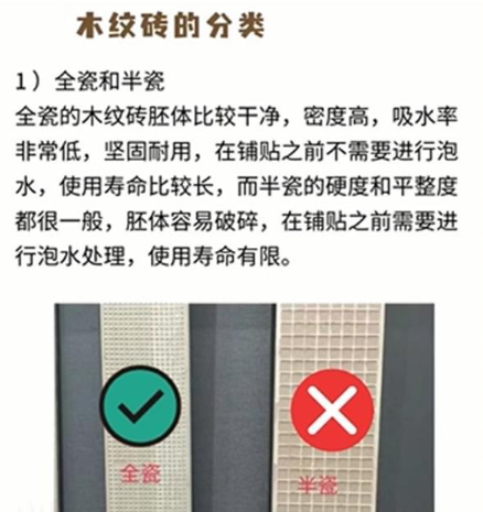 第一就是选全瓷的木纹砖,别选半瓷的。