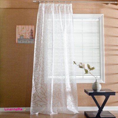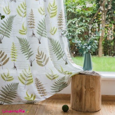 批发亚马逊速卖通北欧ins风格植物蕨叶棉麻窗纱亚麻纱帘成品窗帘
