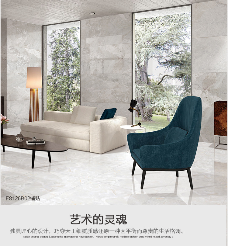 佛山现代轻奢600x1200配套600x600角砾石纹地面砖墙面砖背景墙砖