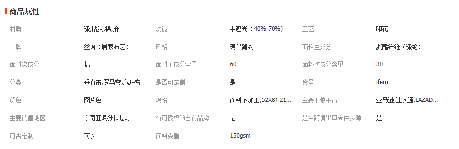 批发亚马逊速卖通北欧ins风格植物蕨叶棉麻窗纱亚麻纱帘成品窗帘