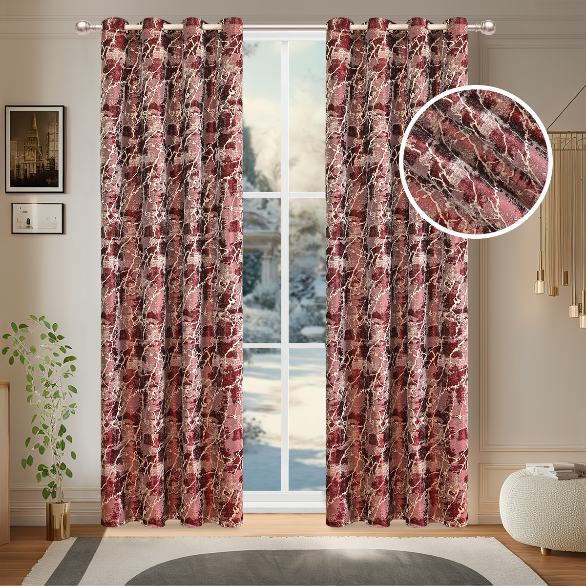 跨境新款提花双色大理石遮光窗帘打孔客厅卧室成品窗帘 TEMU代发