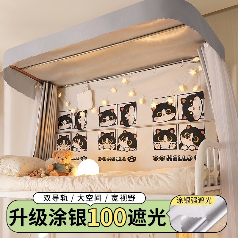 u型轨道床帘全遮光大学生宿舍上铺蚊帐一体式双滑轨u形寝室窗帘
