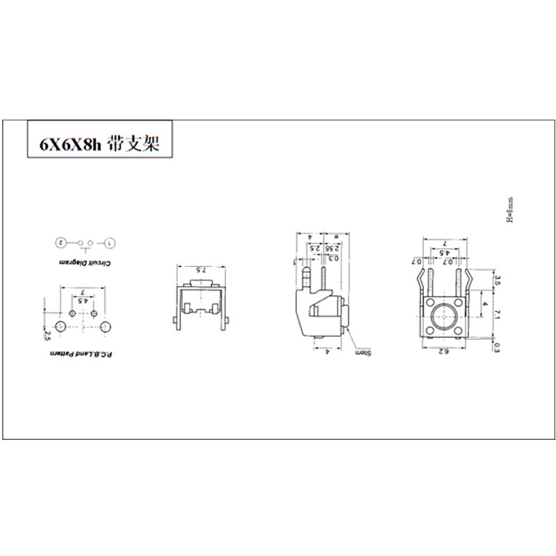 6*6*8h按键开关 侧按带支架电子元器件轻触开关圆形手柄微型开关