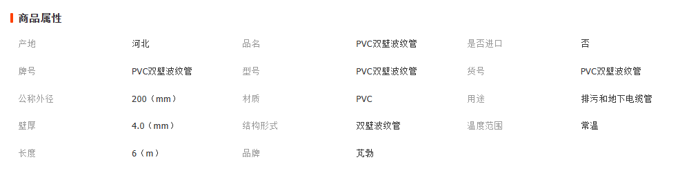 芃勃管道批发波纹管upvc波纹管优质PVC-U双壁波纹管pv c双壁波纹管