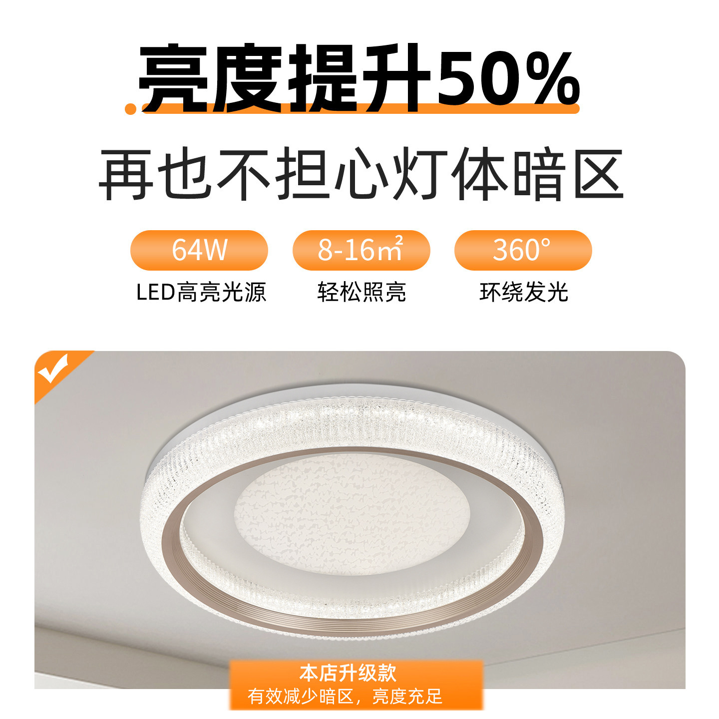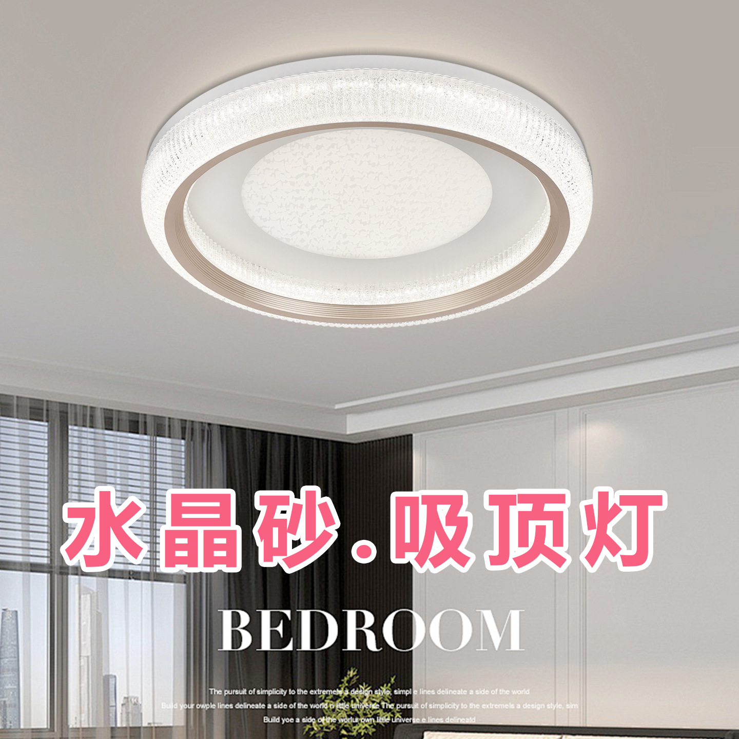 卧室吸顶灯轻奢水晶砂房间灯温馨简约2025新款家用奶油风护眼灯具