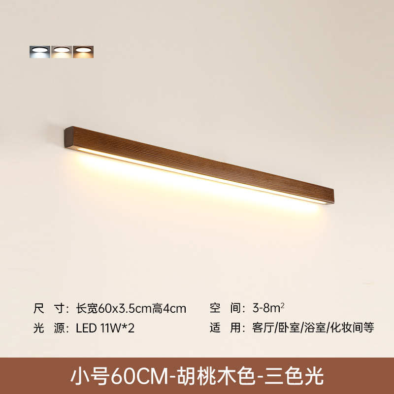 现代简约实木线条卧室床头壁灯中山灯具北欧原木木质一字长条壁灯