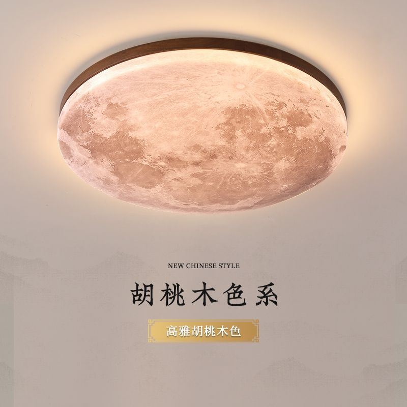 新中式月球LED吸顶灯北欧创意温馨房间卧室灯日式原木阳台过道灯
