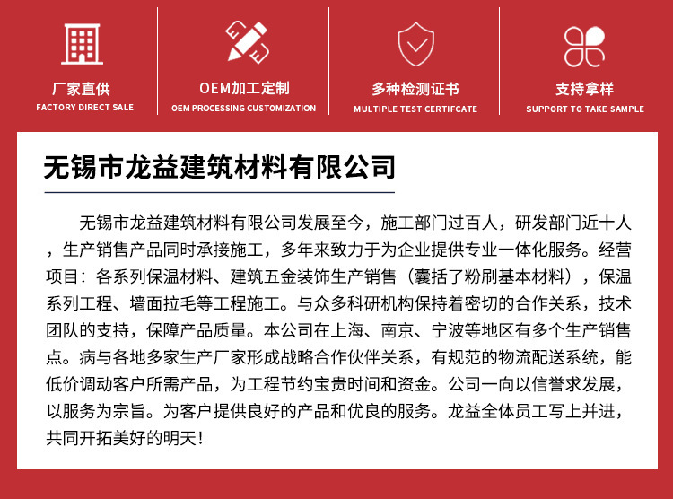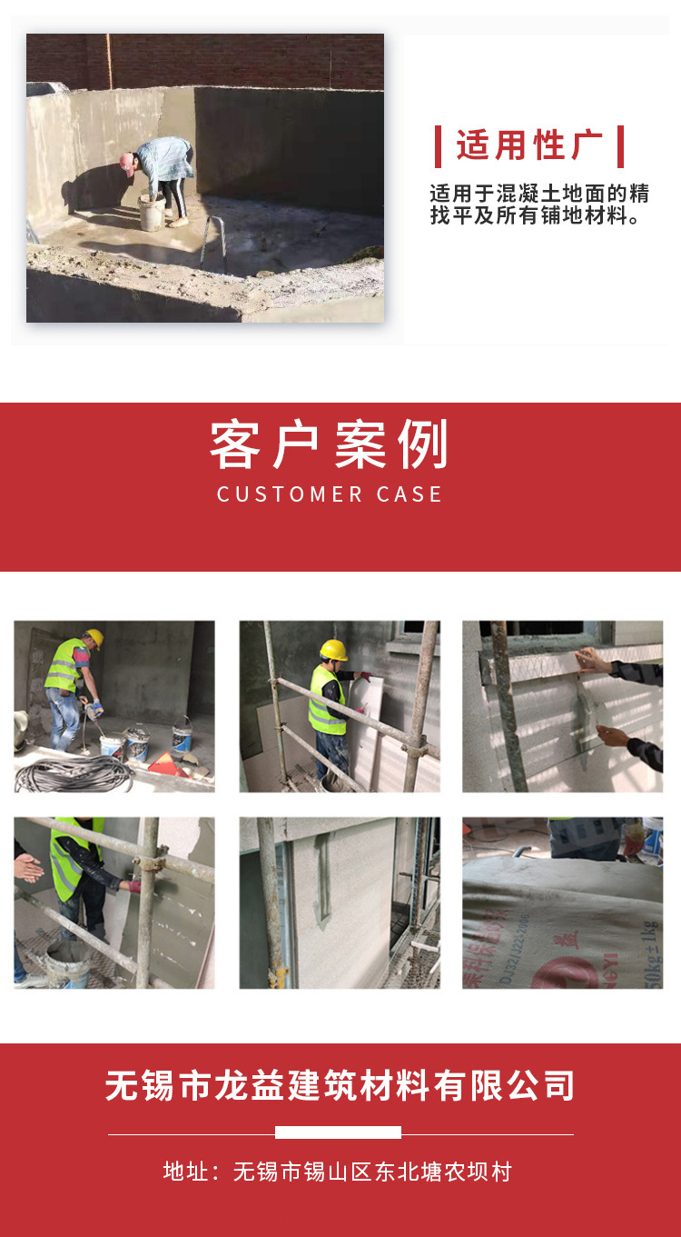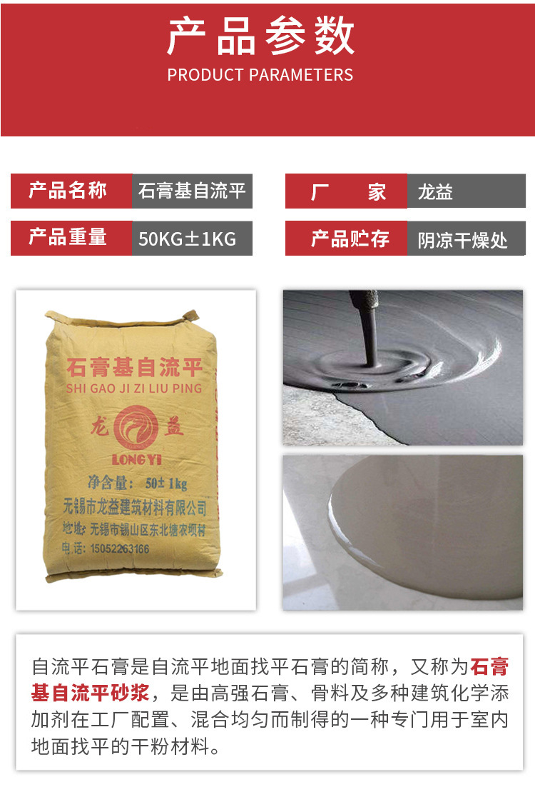 本网页所展示的有关【现货无砂石膏基自流平砂浆 水泥自流平复合砂浆工程地面找平_水泥、砂浆_无锡市龙益建筑材料有限公司】的信息/图片/参数等由工装云的会员【无锡市龙益建筑材料有限公司】提供,由工装云会员【无锡市龙益建筑材料有限公司】自行对信息/图片/参数等的真实性、准确性和合法性负责,本平台(本网站)仅提供展示服务,请谨慎交易,因交易而产生的法律关系及法律纠纷由您自行协商解决,本平台(本网站)对此不承担任何责任。您在本网页可以浏览【现货无砂石膏基自流平砂浆 水泥自流平复合砂浆工程地面找平_水泥、砂浆_无锡市龙益建筑材料有限公司】有关的信息/图片/价格等及提供【现货无砂石膏基自流平砂浆 水泥自流平复合砂浆工程地面找平_水泥、砂浆_无锡市龙益建筑材料有限公司】的商家公司简介、联系方式等信息。