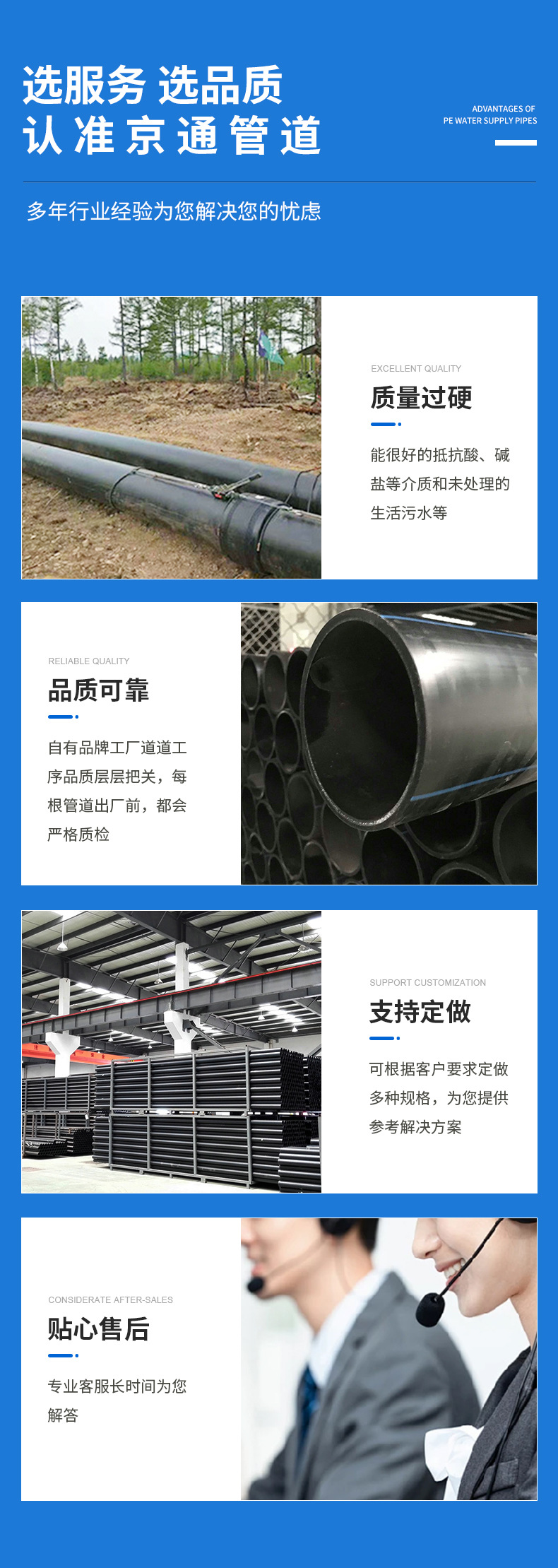 本网页所展示的有关【京通厂家现货供应HDPE给水管PE穿线管市政工程水管大口径灌溉pe_供水管_天津京通管道科技股份有限公司】的信息/图片/参数等由工装云的会员【天津京通管道科技股份有限公司】提供,由工装云会员【天津京通管道科技股份有限公司】自行对信息/图片/参数等的真实性、准确性和合法性负责,本平台(本网站)仅提供展示服务,请谨慎交易,因交易而产生的法律关系及法律纠纷由您自行协商解决,本平台(本网站)对此不承担任何责任。您在本网页可以浏览【京通厂家现货供应HDPE给水管PE穿线管市政工程水管大口径灌溉pe_供水管_天津京通管道科技股份有限公司】有关的信息/图片/价格等及提供【京通厂家现货供应HDPE给水管PE穿线管市政工程水管大口径灌溉pe_供水管_天津京通管道科技股份有限公司】的商家公司简介、联系方式等信息。