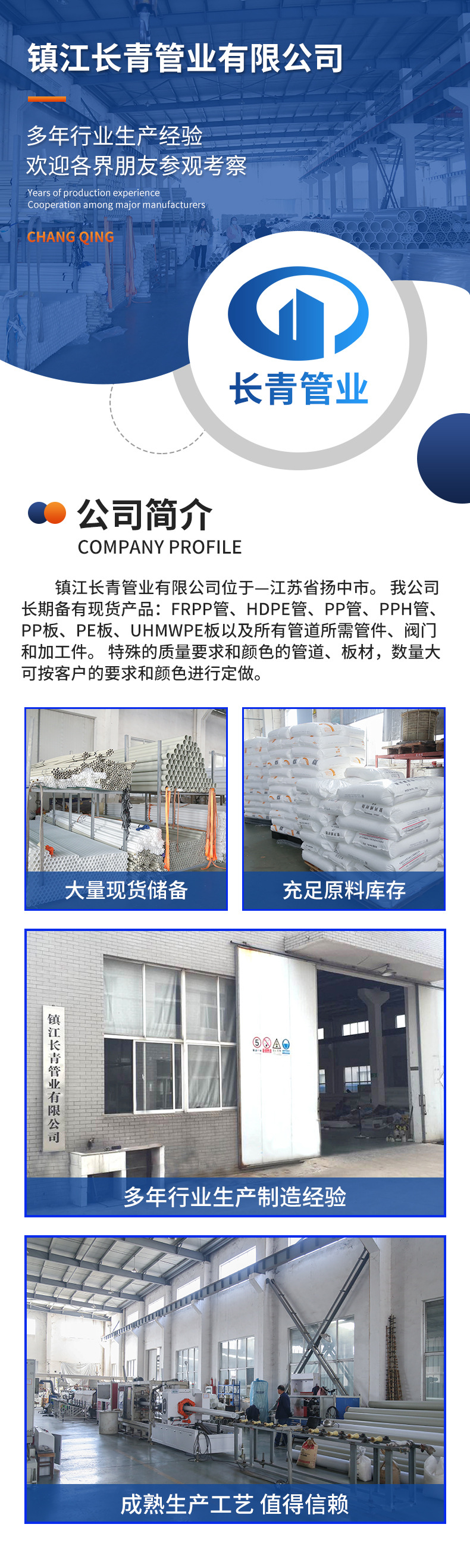 本网页所展示的有关【供应pph管道聚丙烯管PPH管材大口径PPH管PPH阻燃管塑料管道_给排水_镇江长青管业有限公司】的信息/图片/参数等由工装云的会员【镇江长青管业有限公司】提供,由工装云会员【镇江长青管业有限公司】自行对信息/图片/参数等的真实性、准确性和合法性负责,本平台(本网站)仅提供展示服务,请谨慎交易,因交易而产生的法律关系及法律纠纷由您自行协商解决,本平台(本网站)对此不承担任何责任。您在本网页可以浏览【供应pph管道聚丙烯管PPH管材大口径PPH管PPH阻燃管塑料管道_给排水_镇江长青管业有限公司】有关的信息/图片/价格等及提供【供应pph管道聚丙烯管PPH管材大口径PPH管PPH阻燃管塑料管道_给排水_镇江长青管业有限公司】的商家公司简介、联系方式等信息。