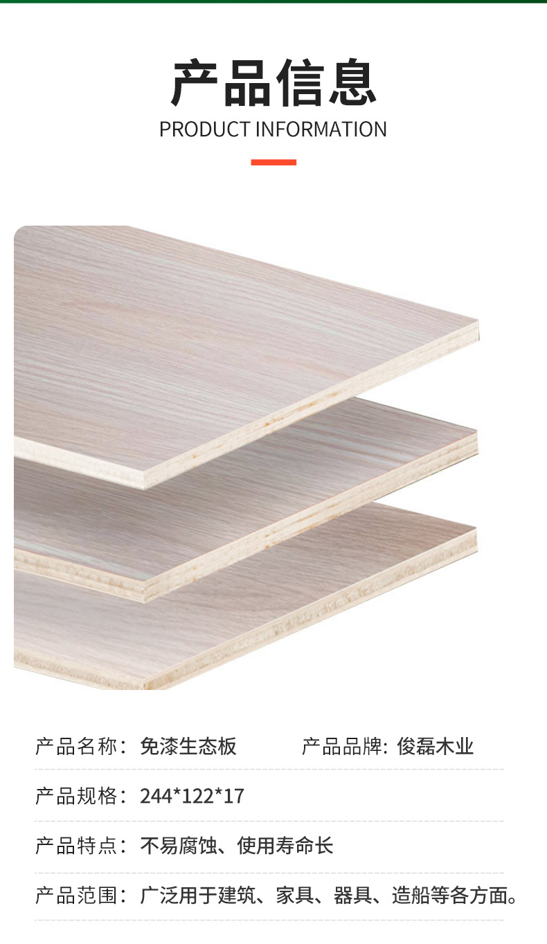 本网页所展示的有关【免漆生态板杉木室内装饰板材墙面实木多层板家装衣柜橱柜木板材_木板_江山市俊磊木业有限公司】的信息/图片/参数等由工装云的会员【江山市俊磊木业有限公司】提供,由工装云会员【江山市俊磊木业有限公司】自行对信息/图片/参数等的真实性、准确性和合法性负责,本平台(本网站)仅提供展示服务,请谨慎交易,因交易而产生的法律关系及法律纠纷由您自行协商解决,本平台(本网站)对此不承担任何责任。您在本网页可以浏览【免漆生态板杉木室内装饰板材墙面实木多层板家装衣柜橱柜木板材_木板_江山市俊磊木业有限公司】有关的信息/图片/价格等及提供【免漆生态板杉木室内装饰板材墙面实木多层板家装衣柜橱柜木板材_木板_江山市俊磊木业有限公司】的商家公司简介、联系方式等信息。